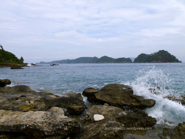 Tadi tidak ramai di sana. Hanya kami berlima, dua orang pemancing yang menikmati waktu memancing ikan, dan seorang fotografer yang tampaknya serombongan dengan kedua pemancing itu. Tidak selalu ramai juga sih di sana. Tapi pernah, pada kunjungan saya sebelumnya, di sana ada beberapa tenda yang berdiri dengan beberapa kelompok mahasiswa yang sedang berkemah, suasana jadi riuh waktu itu. Kunjungan singkat tadi saya habiskan untuk duduk di lereng berbatu di sebelah kanan pantai yang memang adem sekali sambil membaca buku. Tidak lama saya hanyut dalam buku yang saya baca, suara ribut dari belakang mengganggu saya. Sekelompok monyet liar bergelayutan di pepohonan. Dengan antusias mereka mengawasi barang bawaan para pemancing yang letaknya tidak jauh dari tempat saya duduk. Sepertinya mereka sedang merencanakan sesuatu. Dan benar saja, tidak lama seekor monyet seukuran anak anjing mulai mendekati tas yang terdekat dengannya. Sekelebat terlihat monyet itu berhasil menyambar sesuatu. Sepotong biskuit menempel di mulutnya. Dan potongan biskuit lain tercecer di tanah berbatu. “Husss!!”, seru si Pemancing yang sadar ada seekor monyet yang mendekati mereka. Monyet itu pun kembali ke kelompoknya. Namun tak lama ternyata mereka pun mendekat lagi. Kali ini cukup ramai. Rupanya mereka ingin mengambil semua potongan biskuit yang tercecer. “Husss!!”, si Pemancing berseru lagi. Dan siang tadi dipenuhi kesibukan para Pemancing yang mencoba mengusir kawanan monyet itu dan di sisi lain para monyet itu pun tetap mendekat dengan gigih. Kesibukan berhenti ketika akhirnya para Pemancing itu mengemasi barang bawaan mereka dan berpindah tempat. Adegan yang sungguh lucu. Saya pun terbahak.