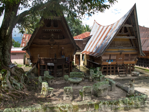 Yang menarik bagi saya di Huta Siallagan ini adalah adanya sebuah Hau Habonaran atau pohon kebenaran di tengah Huta yang di bawahnya terdapat satu set meja batu bundar dikelilingi dengan kursi yang terbuat dari batu juga. Pada jaman dahulu di mana orang Batak masih menganut agama malim (yang pengikutnya dinamakan parmalim), semacam agama yang mempercayai kekuatan roh nenek moyang, semua urusan dan peristiwa kehidupan mereka selesaikan secara adat. Di kursi batu itu lah para Tetua Adat, Raja Huta, Dukun pemilik ilmu kebatinan, dan para undangan lain berkumpul untuk menyelesaikan masalah adat serta melakukan persidangan atau mengadili sebuah perkara kejahatan. Saya jadi berpikir, melihat peradaban Batak yang sangat tua mungkin inilah bentuk musyawarah mufakat yang untuk pertama kali ada di Indonesia.
