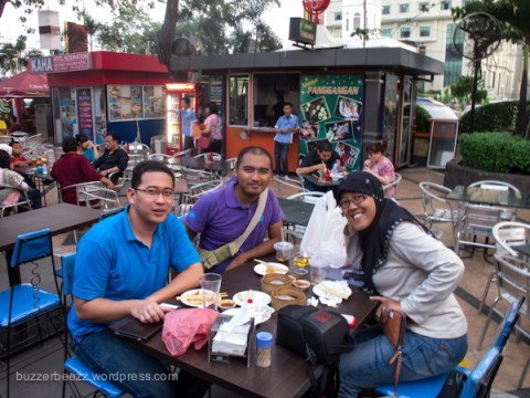 Sementara kawan-kawan Jejak Kaki melanjutkan perjalanan ke Bandara Polonia, saya dan Mbak Zee melanjutkan perjalanan ke Merdeka Walk untuk bertemu dengan seorang Kokohrocha. Menuju ke Merdeka Walk, kami naik bentor. Sepanjang perjalanan, mbak Zee terlihat sangat excited. Mungkin karena di Jawa gak ada bentor kali ya jadi norak-norak bergembira gini. Hahaha.. Sesampainya di Merdeka Walk, langsung menuju restoran Nelayan Jala-Jala. Di sana sudah menunggu Kokoh. Walaupun saya cukup sering menikmati sajian menu dimsum dan pancake durian punya Nelayan Jala-Jala, tetap saja kalap makan sampe di sana. Memang, dimsum dan pancake durian Nelayan ini adalah kuliner wajib dicoba kalau berkunjung ke Medan.