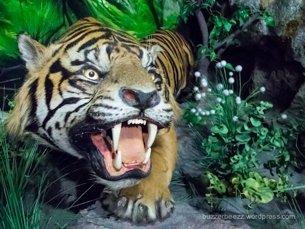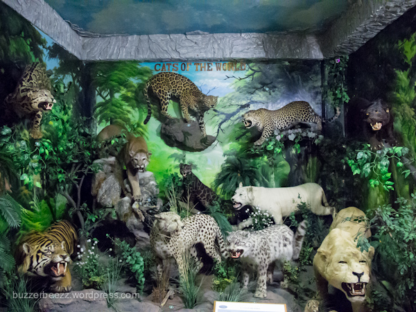 Saya sengaja tidak mau cepat-cepat menyelesaikan kunjungan saya di museum ini. Dengan latar suara rekaman riuh satwa-satwa dan ruangan-ruangan yang dipenuhi dengan diorama berisi awetan satwa di setiap ruangan yang saya kunjungi membuat semakin betah menjelajah. Saya berhenti cukup lama untuk mengamati beberapa spesies beruang dari Beruang Grizzly (Ursus arctos horribili) sampai Beruang Kutub (Ursus maritimus) di ruangan bernama Bear Room. Sesekali saya juga mengambil foto close-up satwa eksotis yang terancam punah seperti Harimau Sumatra (Panthera tigris sumatrae) di ruang Cats of The World. Tak lupa mengintip lebih dekat ruang African Big Five yang berisi 5 satwa yang paling susah untuk diburu dan keberadaannya pun hampir punah di Afrika, yaitu Singa (Phantera leo), Gajah Afrika (Loxodonta africana), Banteng (Syncerus caffer), Macan Tutul (Phantera pardus), dan Badak Putih (Ceratotherium simum). Beberapa ruangan lainnya adalah Kingdom of Birds yang berisi koleksi berbagai jenis burung, Pheasant of The World yang menyuguhkan keanekaragaman ayam, Varieties Bird of Paradise yang penuh dengan koleksi burung cendrawasih, serta Dry Aquarium yang menyajikan berbagai jenis satwa air.