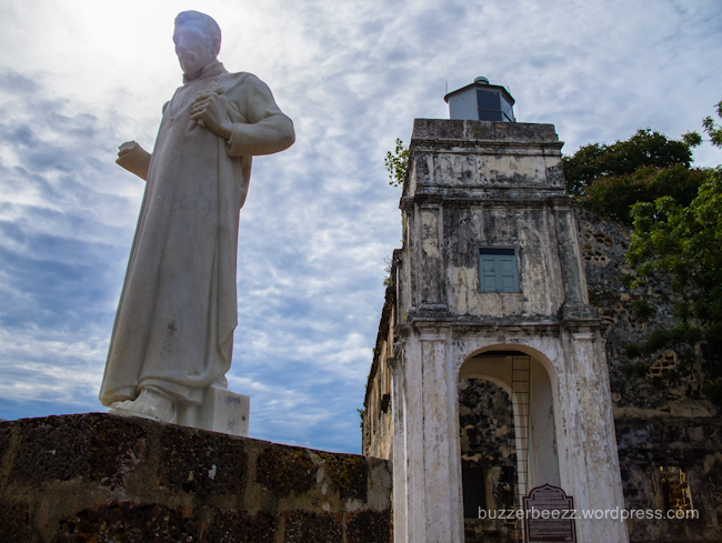 Berikutnya, kami berjalan menaiki bukit untuk menuju ke St Paul Church. Bukan gereja sih sebenarnya. Lebih tepat kalau disebut sebagai reruntuhan gereja. Gereja yang dulunya chapel kecil buatan Portugis ini adalah salah satu spot favorit saya di Melaka. Letaknya yang di atas bukit sudah membuat saya mengagumi kegagahannya sejak menginjakkan kaki ke anak tangga pertama di bawah bukit. Apalagi di depan gereja tersebut terdapat sebuah patung St. Francis Xavier yang menambah keunikannya. Patung ini didirikan di sini untuk menghormati St. Francis Xavier, seorang misionaris asal Spanyol yang rutin berkunjung ke sini dari 1545-1522. Penamaan St Paul Church ini sendiri digagas oleh bangsa Belanda setelah merebut chapel kecil ini dari Portugis. St Paul Church ini digunakan oleh Belanda selama 112 tahun sampai kemudian mereka mempunyai gereja sendiri, yaitu Christ Church. Memasuki ruangan tanpa atap dalam gereja, suasana klasik yang indah menyeruak. Beberapa batu nisan dari misionaris-misionaris Portugis tertata rapi di sana.
