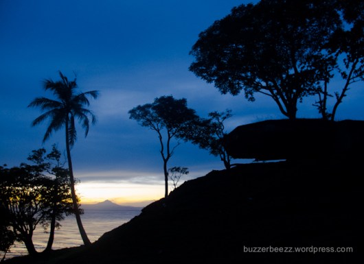 Suasana masih gelap saat saya menyusuri jalanan di Pulau Weh dengan motor menuju sisi timur pulau. Entah kenapa usai subuh saya begitu bersemangat ingin melihat sunrise di pulau dimana 0 km Indonesia dimulai ini. Tujuan awal saya adalah pantai Sumur Tiga. Namun pagi itu sang surya enggan menyingsing dari laut sekitar Sumur Tiga. Terbukti cahaya dari sang surya masih tampak remang-remang di timur jauh. Gas motor pun saya putar kencang kembali menyusuri jalanan. Walaupun sepi tapi jalanan di Pulau Weh ini membutuhkan refleks yang cekatan karena ketika hari masih gelap banyak sekali lembu yang dibiarkan liar memblokade jalanan. Beberapa kali saya terpaksa menginjak rem secara mendadak untuk menghindari tabrakan dengan para lembu yang masih bersantai. Mungkin dalam hati mereka juga terganggu dengan kehadiran saya.