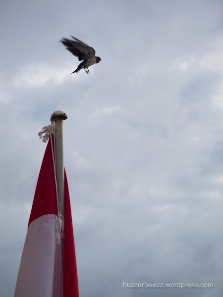 This red and white flag is the flag of Indonesia, my home country. That bird, after it perched for a while on the top of the flag pole, it flew away. Someday, I’m sure, it will come back there. Just like the bird, wherever and whenever I go, I’ll always come back to Indonesia. Everywhere I live, in a remote island somewhere maybe, if it’s still in Indonesia, I’ll call it my home. Yes, Indonesia is always gonna be my homeland.