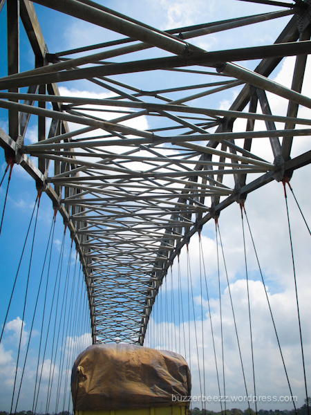 tiap dua minggu sekali lewat jembatan ini dan ternyata lebih menyeramkan ketika jalan kaki di atasnya, getarannya…. goyang kental kentul