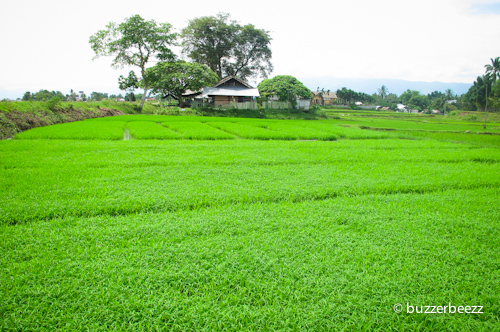 Desember, kalau kata orang Jawa berarti “gede-gedene sumber”. Artinya, desember memiliki curah hujan yang tinggi. Tentu, saat curah hujan tinggi tanaman padi pun menghijau di persawahan. Bukan suatu kebetulan jika kami memilih rute menuju Blang Bintang untuk kami susuri. Karena sepanjang rute itu, persawahan hijau membentang. Tapi kami tidak menempuh jalur jalan raya. Kami memilih blusukan di perkampungan. Untung saja pagi itu hujan tak menyapa seperti malam sebelumnya.