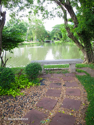 Di Bangkok taman-taman juga keren ya. Kerasa gitu, ijo royo-royo-nya. Jadi betah duduk lama-lama. Dan yang pasti, nggak bentar-bentar didatengin pengamen kecrek-kecrek. Hehehe…