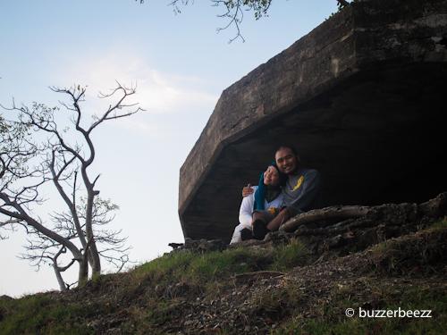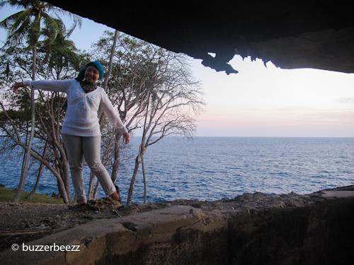 Benteng Jepang ini adalah salah satu tempat favorit saya saat berkunjung ke Sabang. Selain relatif sepi dibanding dengan destinasi wisata lain yang ada di Sabang, saya paling suka melihat matahari terbit dari sini. Ya, terletak di sisi timur pulau Weh, bisa saya katakan kalau lokasi ini menawarkan pemandangan sunrise paling cantik di Sabang. Paling cantik karena matahari saat terbit terlihat dari balik gunung Seulawah pada saat tertentu. Biasanya sih saya ke sana tidak ditemani oleh pasangan. Tapi kali ini, saya ajak istri menyapa mentari pagi dari sini. Saya tunjukkan damainya menyaksikan panorama pagi di tempat ini.