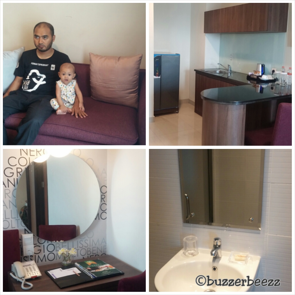 Adalah sebuah hotel yang sekaligus berfungsi sebagai apartemen bernama MG Suites menjadi pilihan kami. Pertimbangan utama memilih hotel ini untuk menginap adalah tersedianya lemari es dan dry pantry. Tentu saja demi kesuksesan MPASI Homemade Bara selama di Semarang. Selain itu, letaknya yang strategis dan cukup dekat dengan Stasiun Tawang menjadi nilai lebih lainnya. Biar bisa check out mepet dengan jadwal kereta kami ke Jakarta gitu.